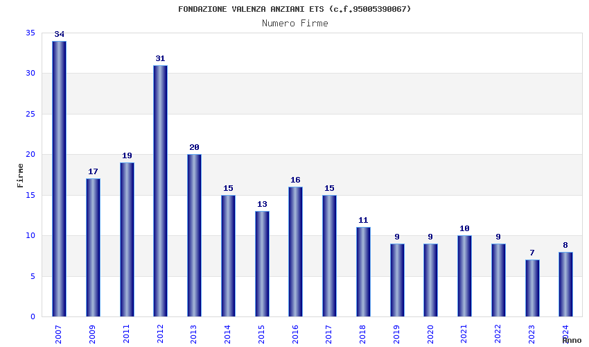 | Anno | Firme | Importi | Media | Naz. | Reg. | Prov. | Comu. |