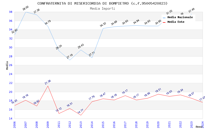 | Anno | Firme | Importi | Media | Naz. | Reg. | Prov. | Comu. |
