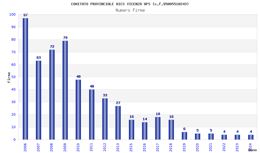 | Anno | Firme | Importi | Media | Naz. | Reg. | Prov. | Comu. |