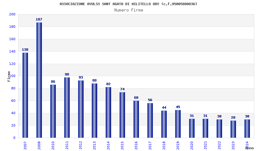 | 2008 | 187 | 4.993,73 | 26,70 | 8.413 | 476 | 69 | 2 |