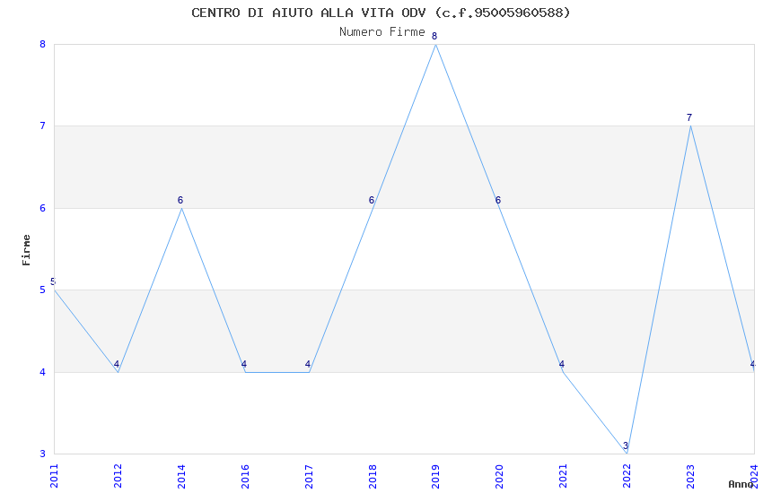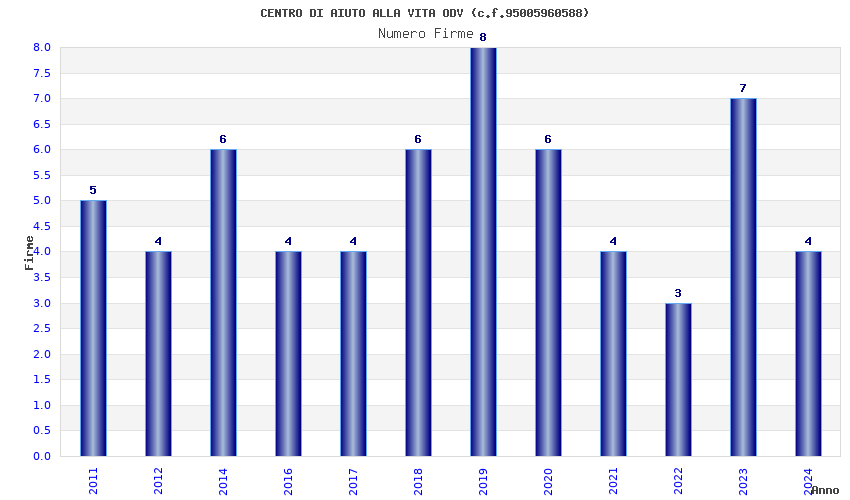 | Anno | Firme | Importi | Media | Naz. | Reg. | Prov. | Comu. |