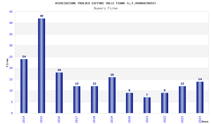 | Anno | Firme | Importi | Media | Naz. | Reg. | Prov. | Comu. |