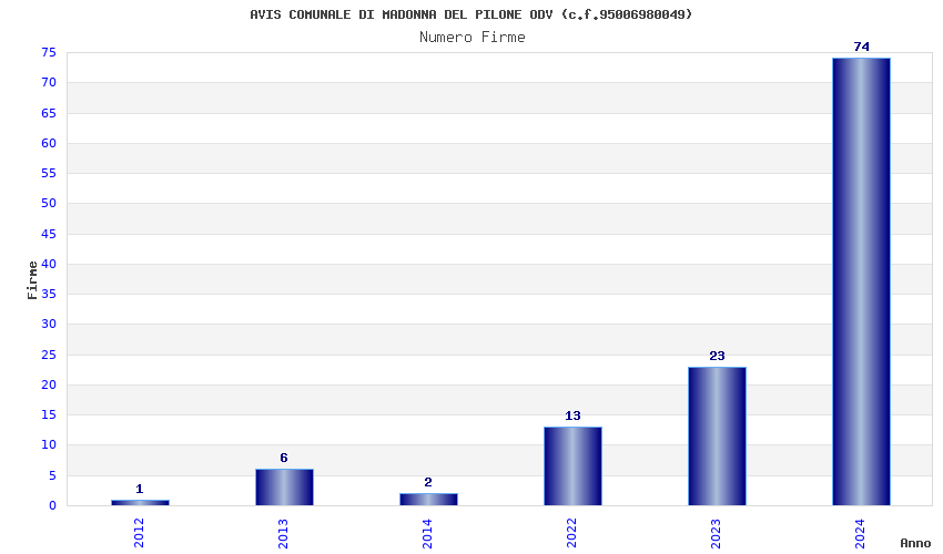 | Anno | Firme | Importi | Media | Naz. | Reg. | Prov. | Comu. |