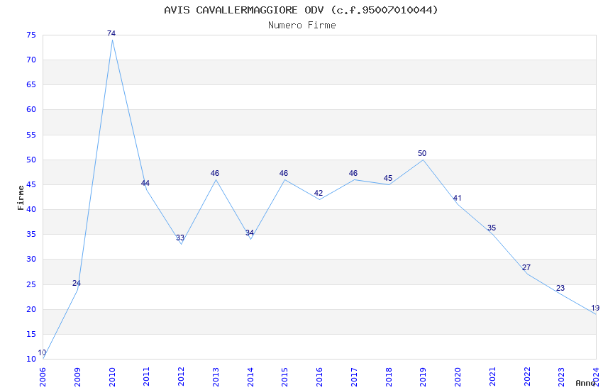 | Anno | Firme | Importi | Media | Naz. | Reg. | Prov. | Comu. |