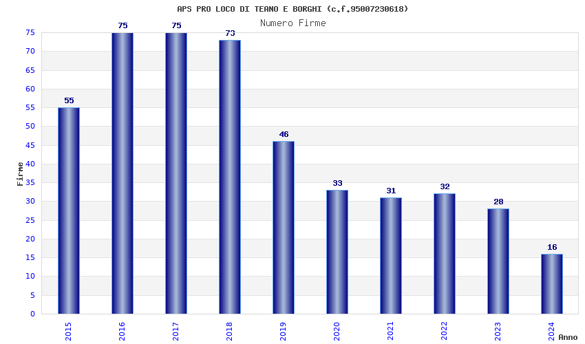 | 2016 | 75 | 2.353,63 | 31,38 | 20.473 | 1.108 | 144 | 4 |