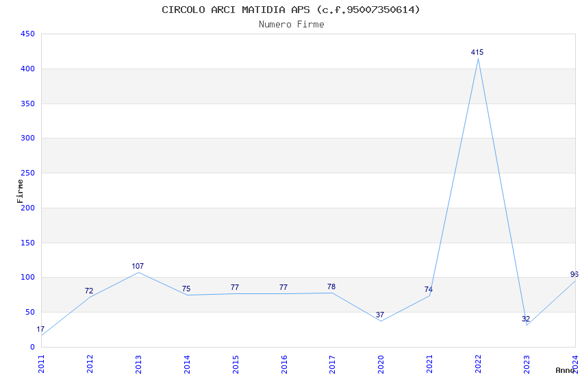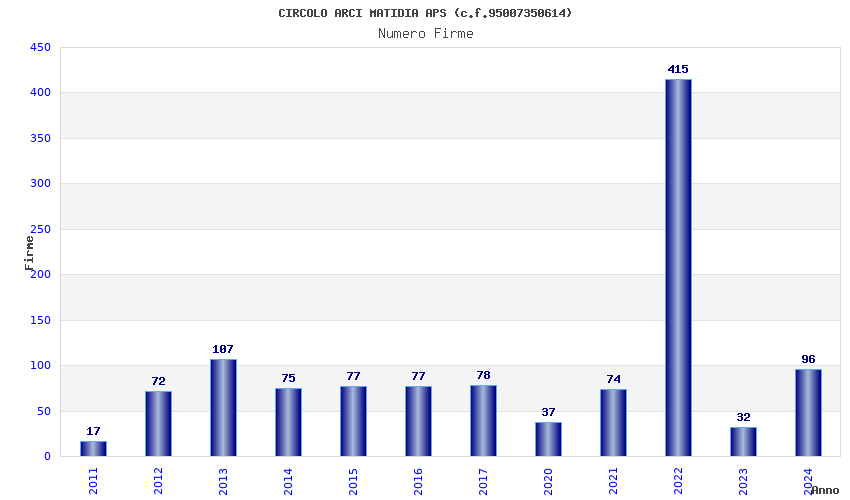 | Anno | Firme | Importi | Media | Naz. | Reg. | Prov. | Comu. |