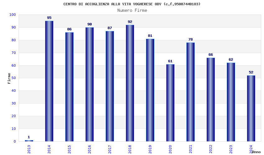 | Anno | Firme | Importi | Media | Naz. | Reg. | Prov. | Comu. |