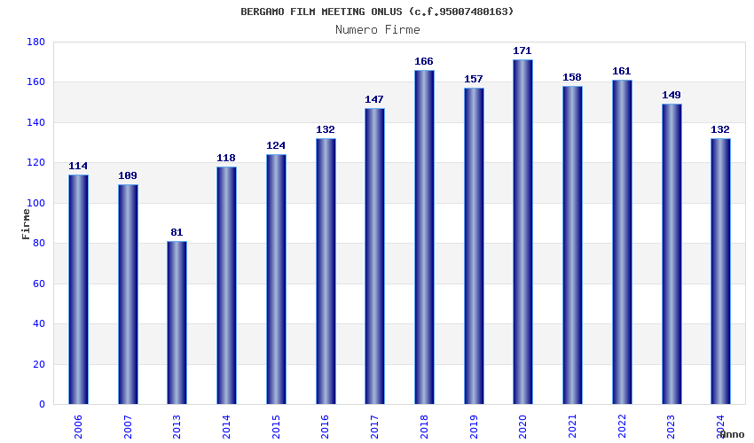 | Anno | Firme | Importi | Media | Naz. | Reg. | Prov. | Comu. |