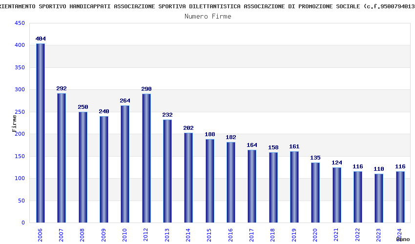 | Anno | Firme | Importi | Media | Naz. | Reg. | Prov. | Comu. |