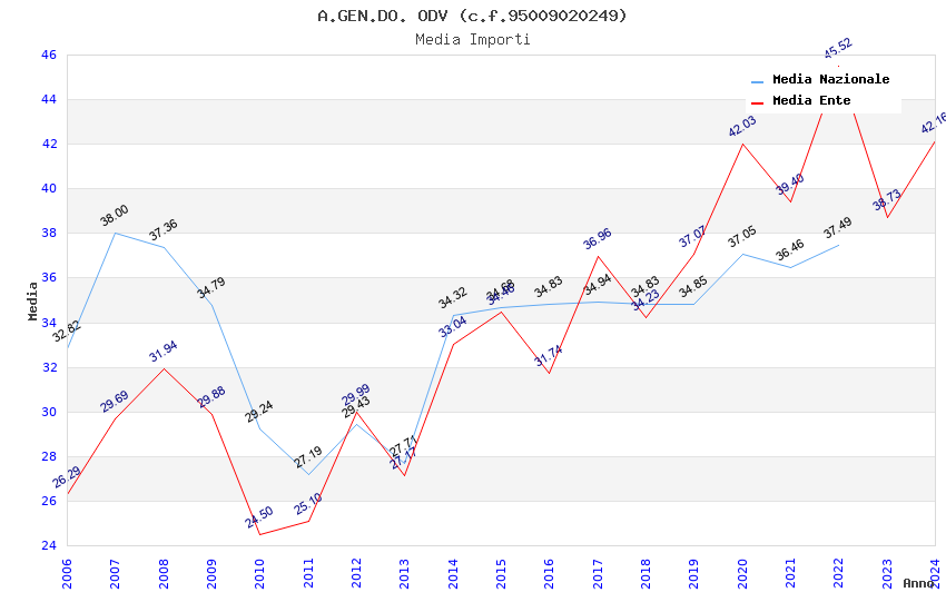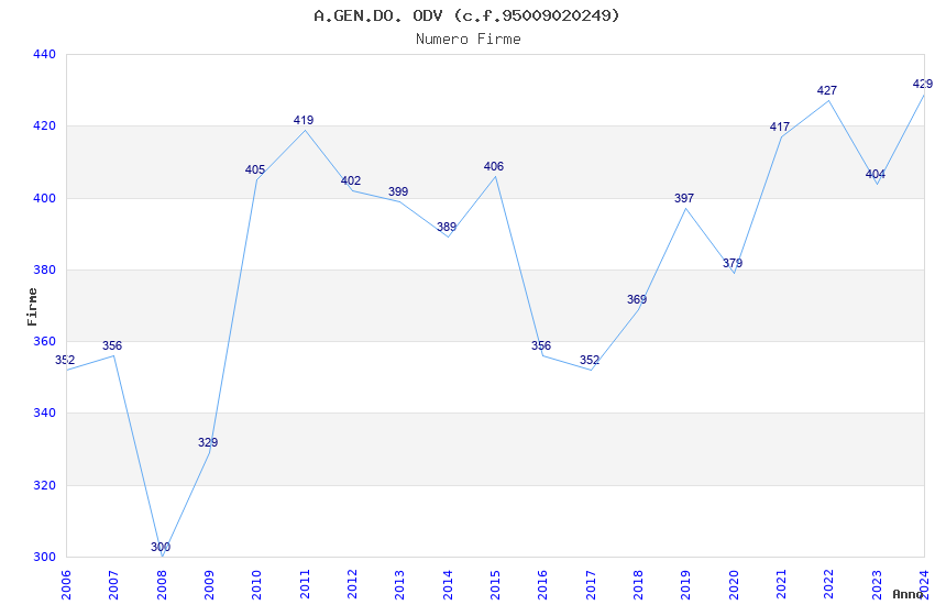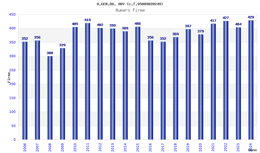 | Anno | Firme | Importi | Media | Naz. | Reg. | Prov. | Comu. |