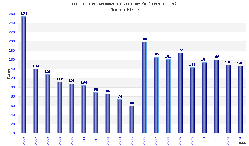 | Anno | Firme | Importi | Media | Naz. | Reg. | Prov. | Comu. |