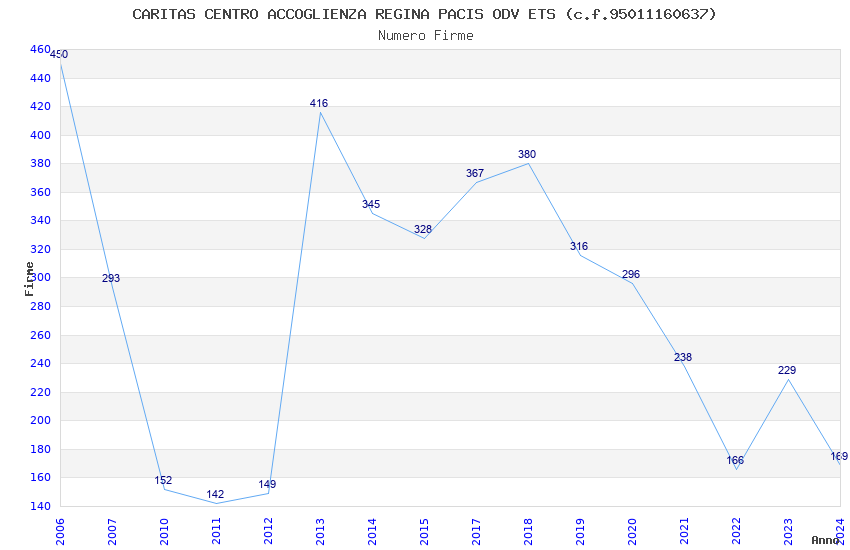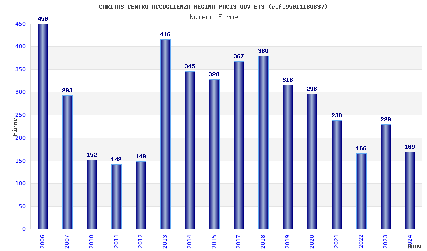 | Anno | Firme | Importi | Media | Naz. | Reg. | Prov. | Comu. |