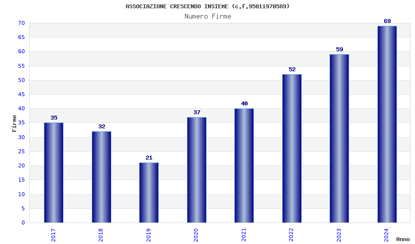| Anno | Firme | Importi | Media | Naz. | Reg. | Prov. | Comu. |