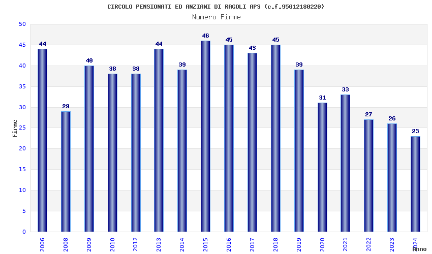 | Anno | Firme | Importi | Media | Naz. | Reg. | Prov. | Comu. |
