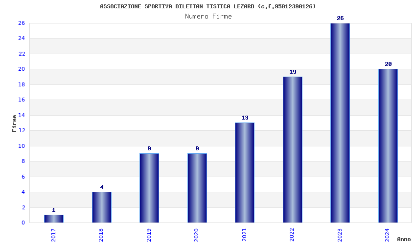 | Anno | Firme | Importi | Media | Naz. | Reg. | Prov. | Comu. |