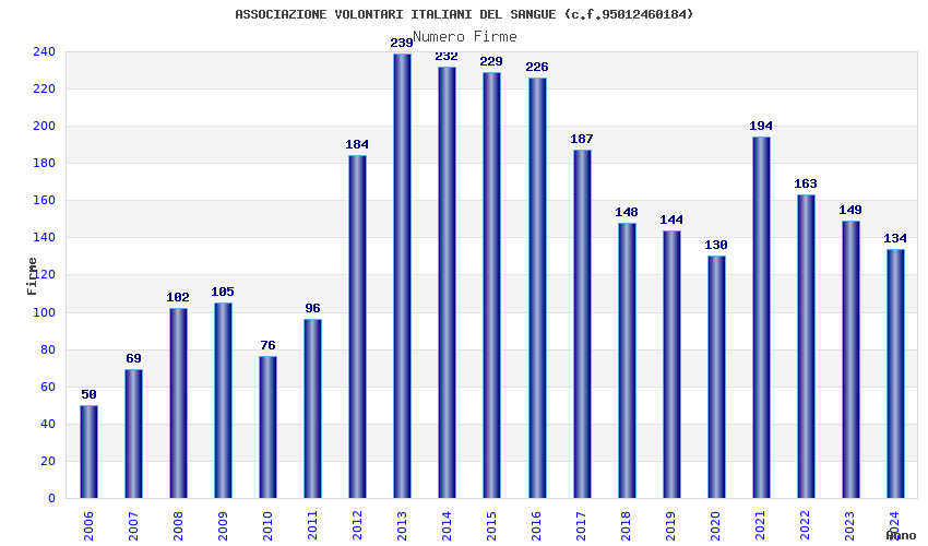 | Anno | Firme | Importi | Media | Naz. | Reg. | Prov. | Comu. |