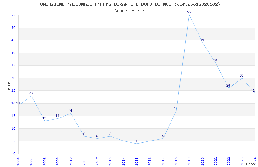 | 2019 | 55 | 1.438,80 | 26,16 | 29.493 | 2.792 | 2.306 | 1.876 |