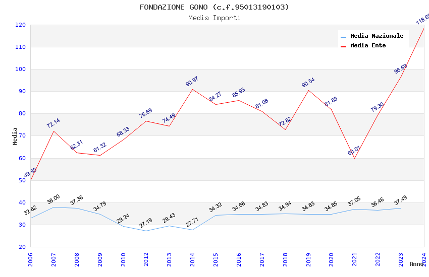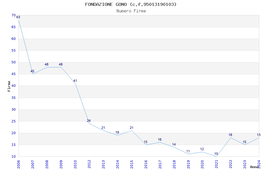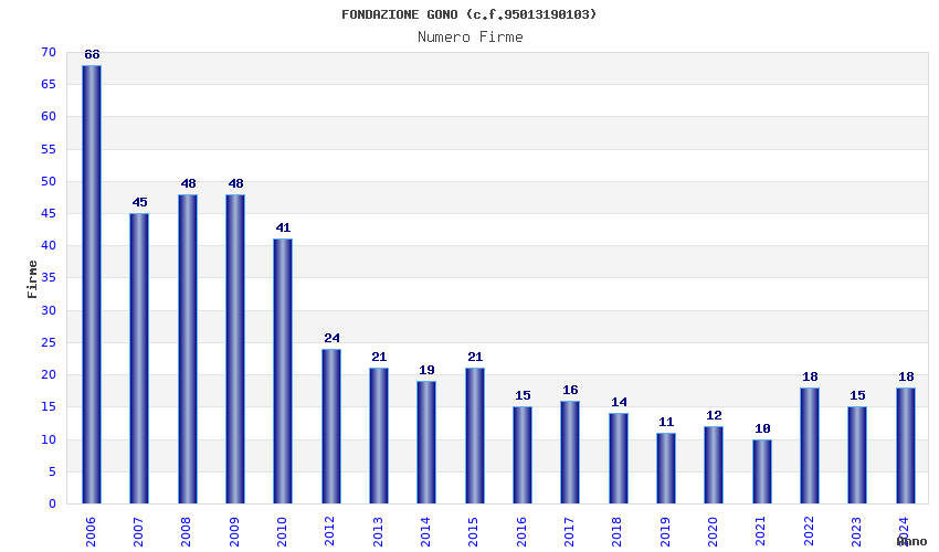 | Anno | Firme | Importi | Media | Naz. | Reg. | Prov. | Comu. |