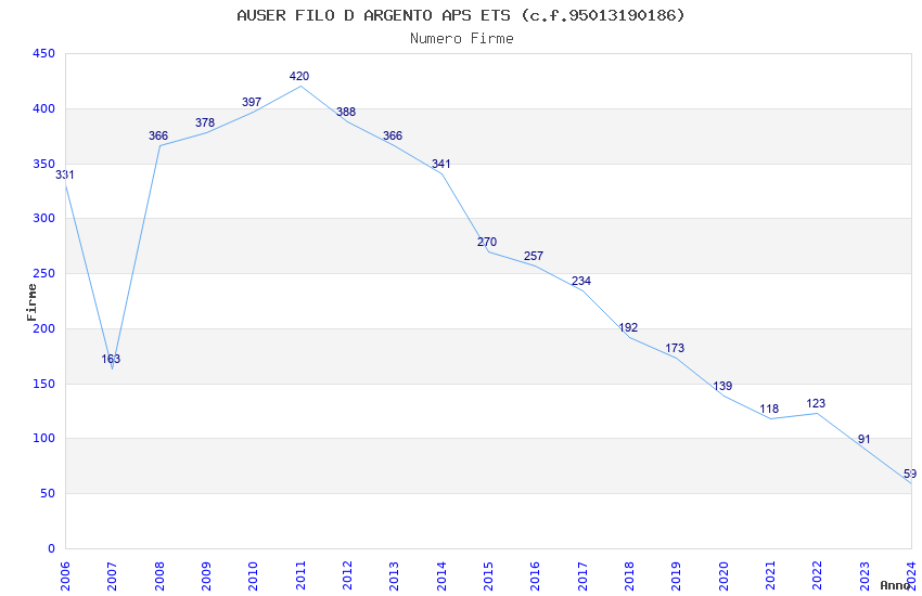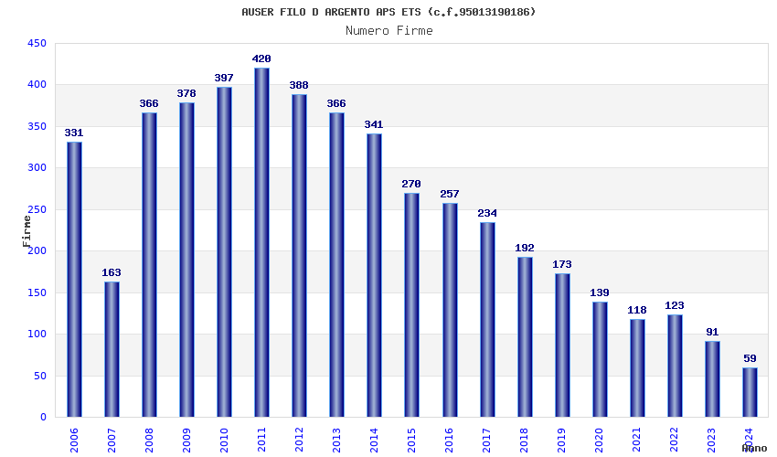| Anno | Firme | Importi | Media | Naz. | Reg. | Prov. | Comu. |