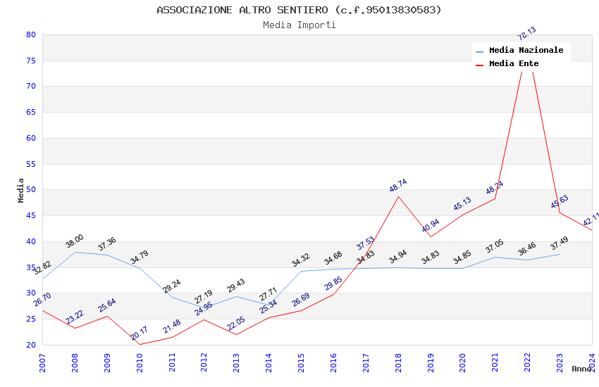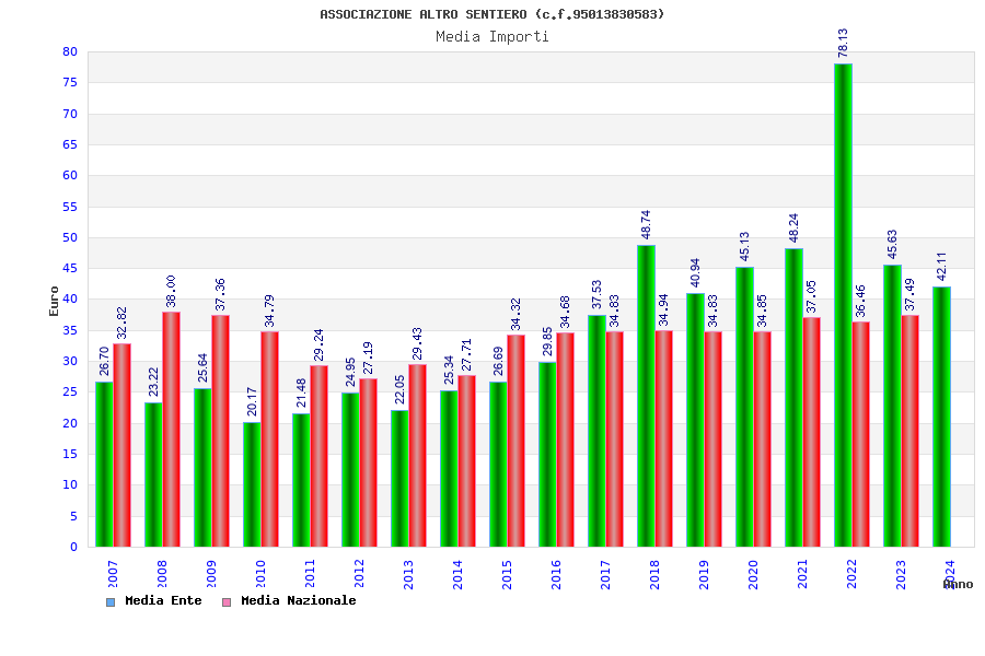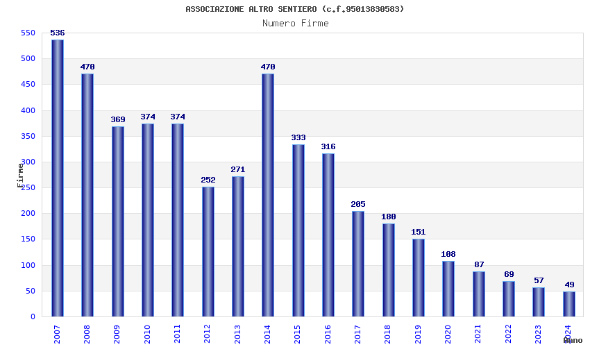 | Anno | Firme | Importi | Media | Naz. | Reg. | Prov. | Comu. |