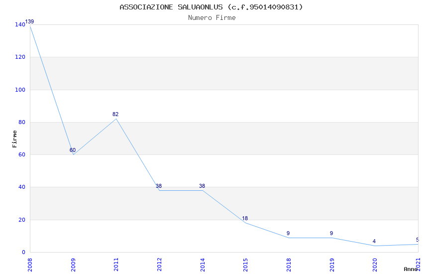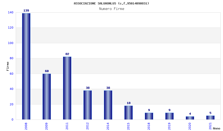 | Anno | Firme | Importi | Media | Naz. | Reg. | Prov. | Comu. |