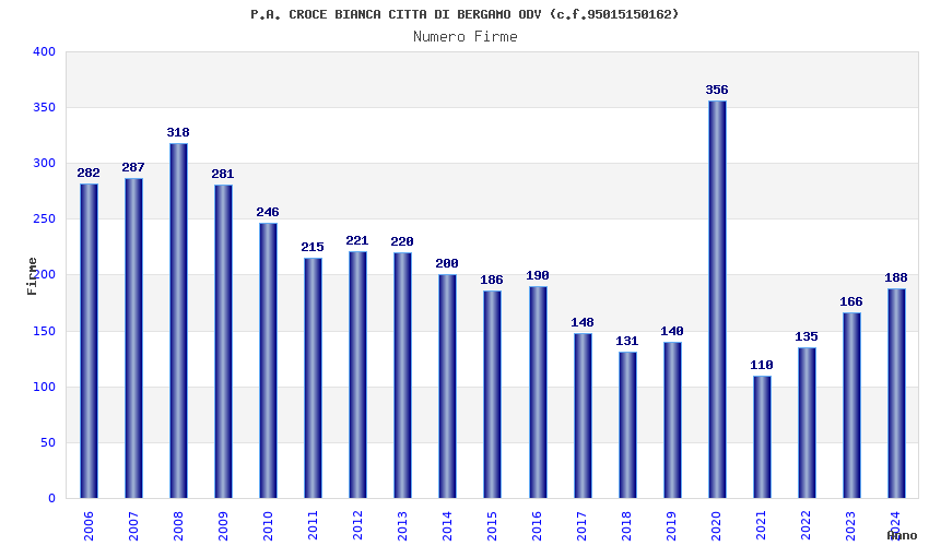 | Anno | Firme | Importi | Media | Naz. | Reg. | Prov. | Comu. |