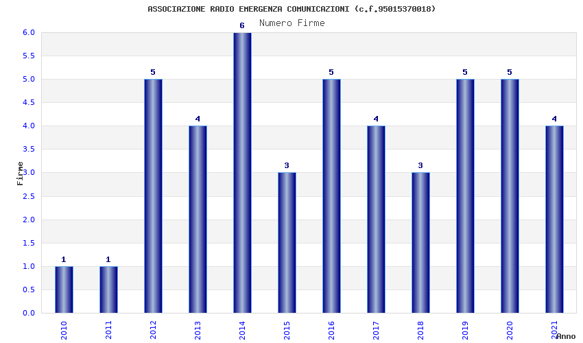 | Anno | Firme | Importi | Media | Naz. | Reg. | Prov. | Comu. |