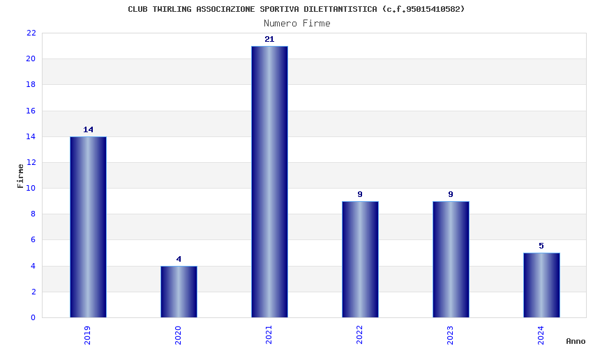 | Anno | Firme | Importi | Media | Naz. | Reg. | Prov. | Comu. |