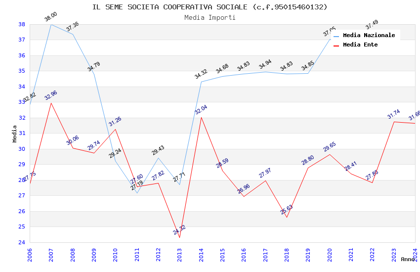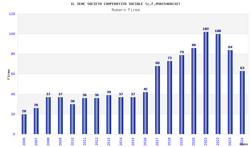 | Anno | Firme | Importi | Media | Naz. | Reg. | Prov. | Comu. |