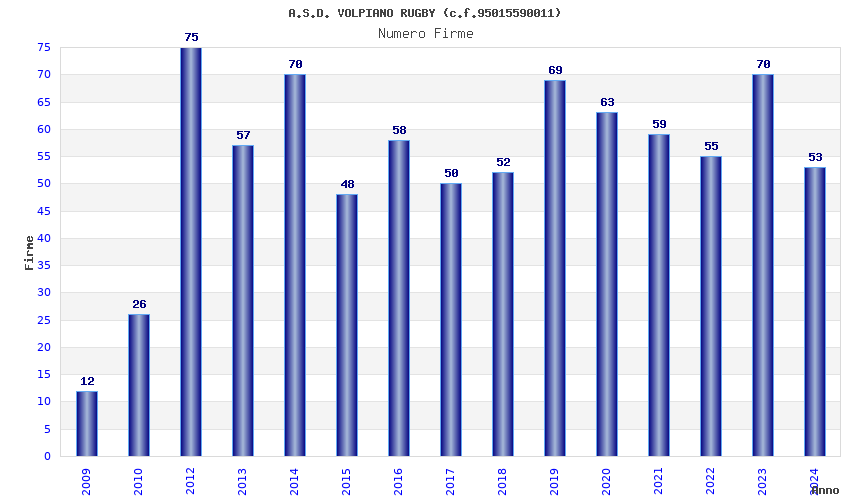 | 2012 | 75 | 2.162,14 | 28,83 | 17.338 | 1.315 | 667 | 5 |