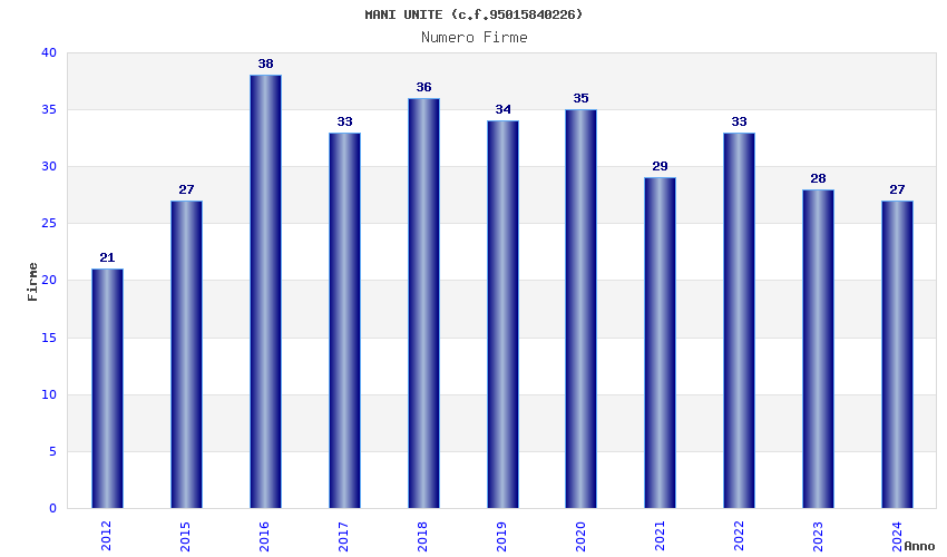 | Anno | Firme | Importi | Media | Naz. | Reg. | Prov. | Comu. |