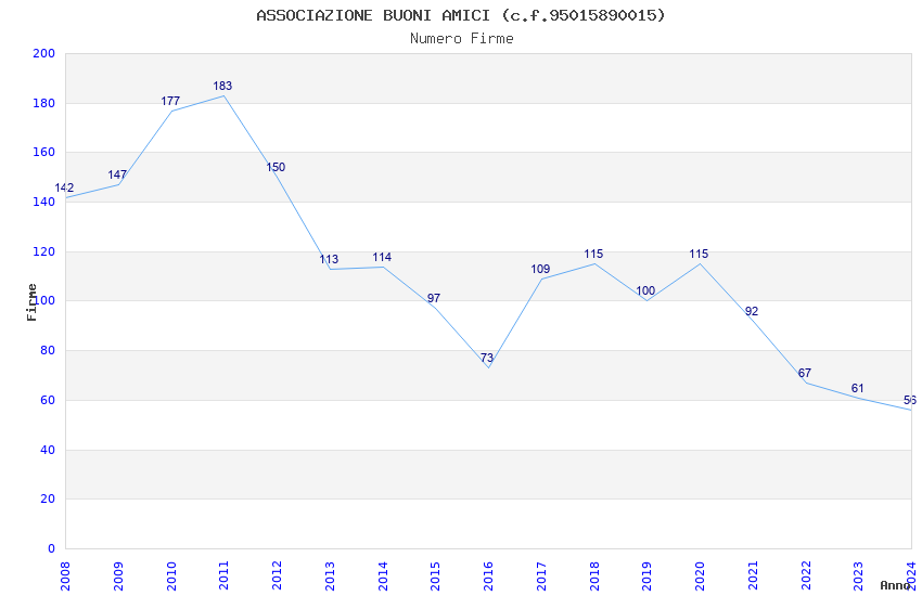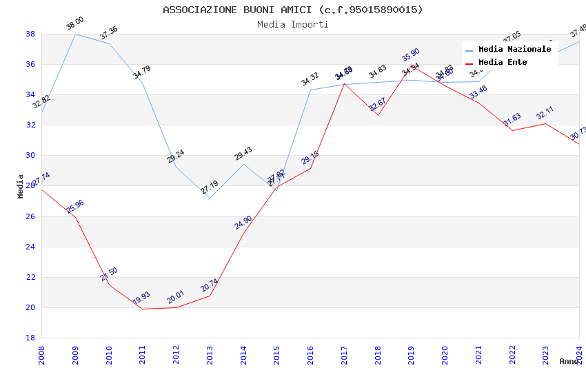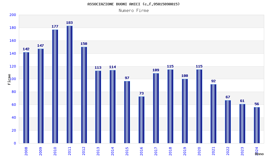 | Anno | Firme | Importi | Media | Naz. | Reg. | Prov. | Comu. |