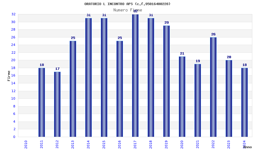 | Anno | Firme | Importi | Media | Naz. | Reg. | Prov. | Comu. |