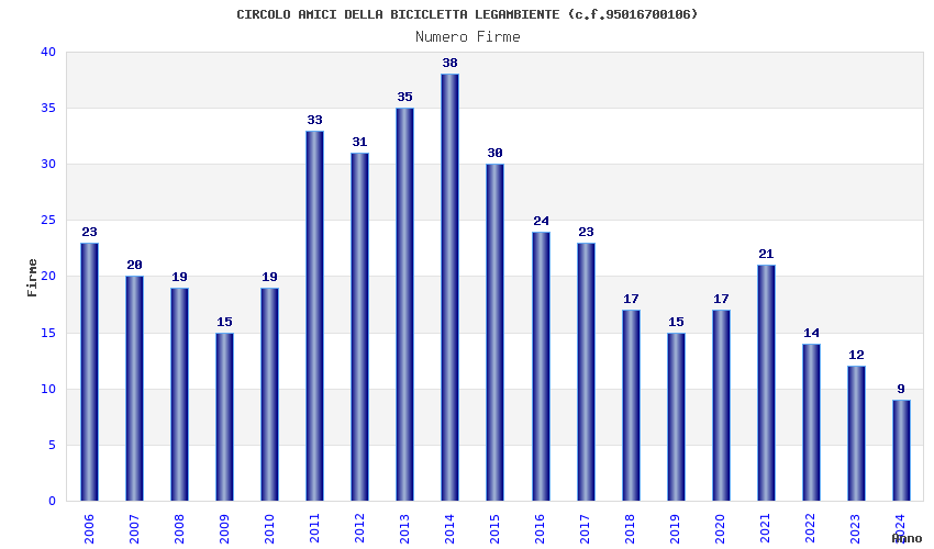 | Anno | Firme | Importi | Media | Naz. | Reg. | Prov. | Comu. |