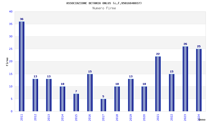 | Anno | Firme | Importi | Media | Naz. | Reg. | Prov. | Comu. |