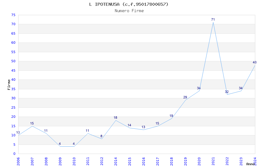 | 2021 | 71 | 2.325,26 | 32,75 | 21.450 | 1.303 | 274 | 73 |