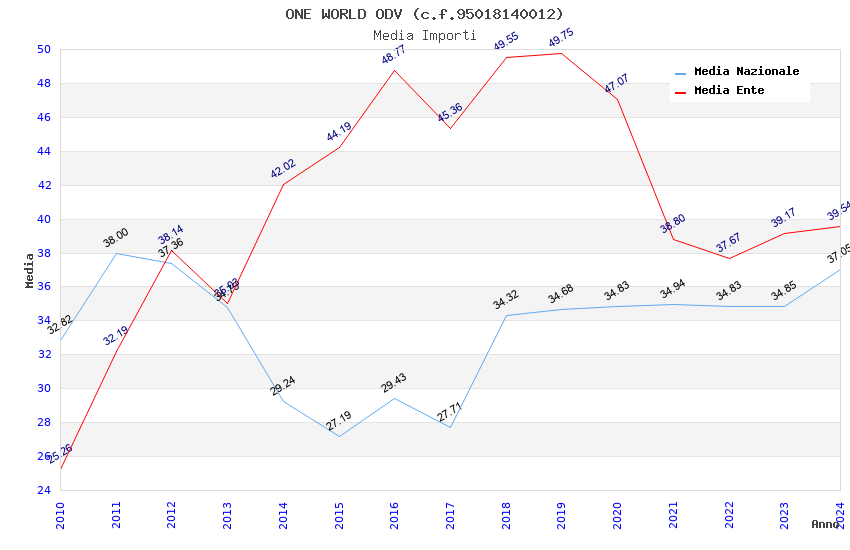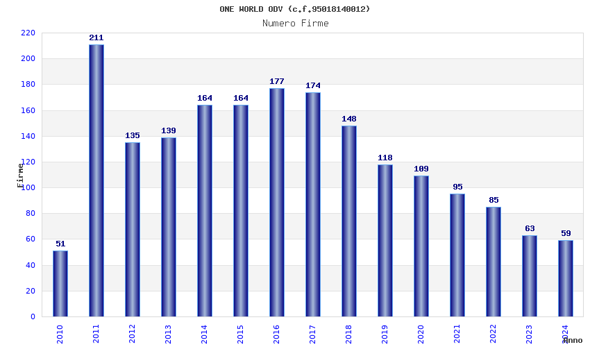 | Anno | Firme | Importi | Media | Naz. | Reg. | Prov. | Comu. |