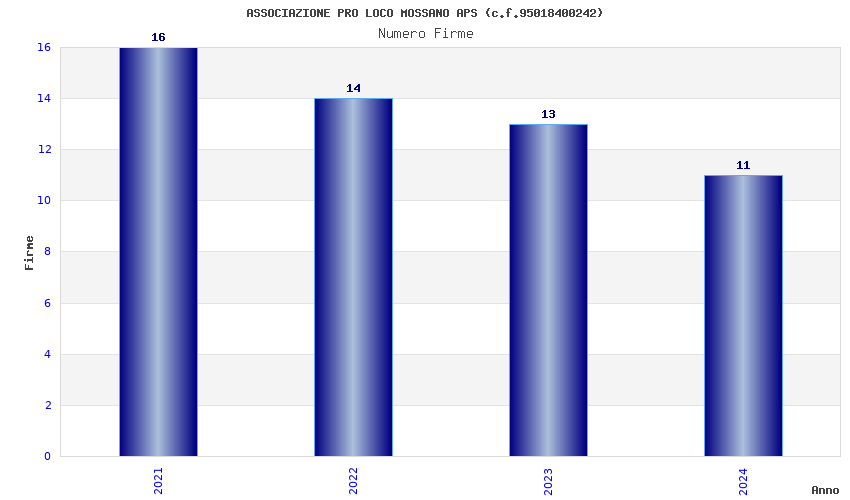 | Anno | Firme | Importi | Media | Naz. | Reg. | Prov. | Comu. |