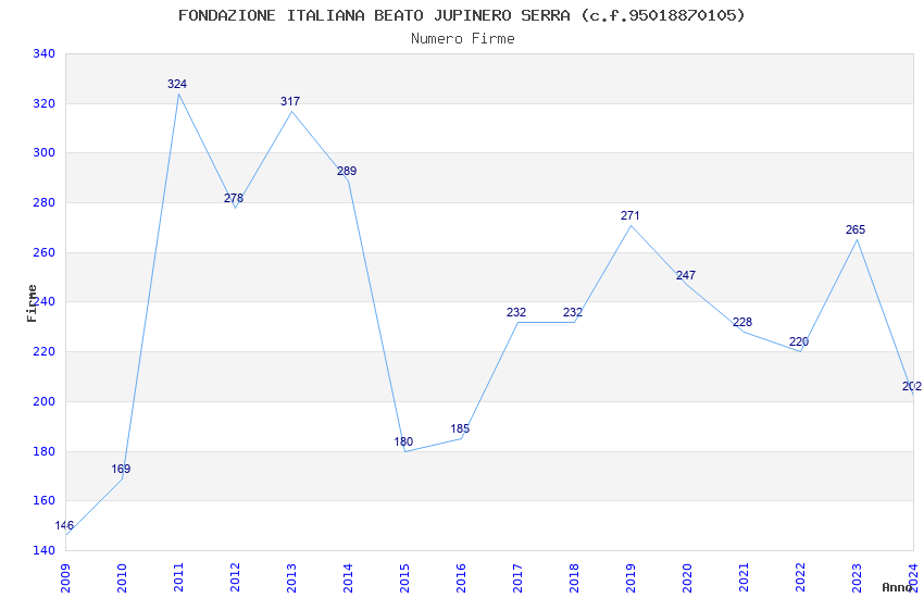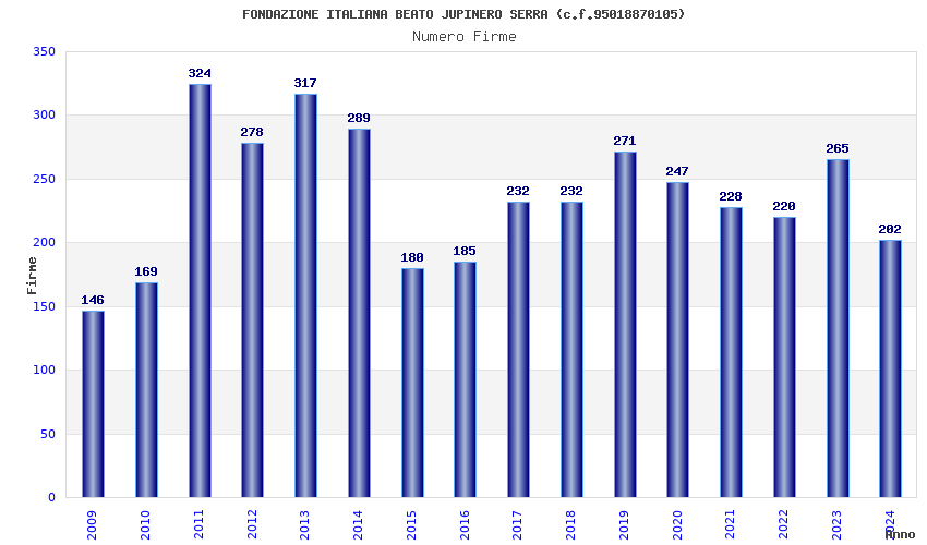 | Anno | Firme | Importi | Media | Naz. | Reg. | Prov. | Comu. |
