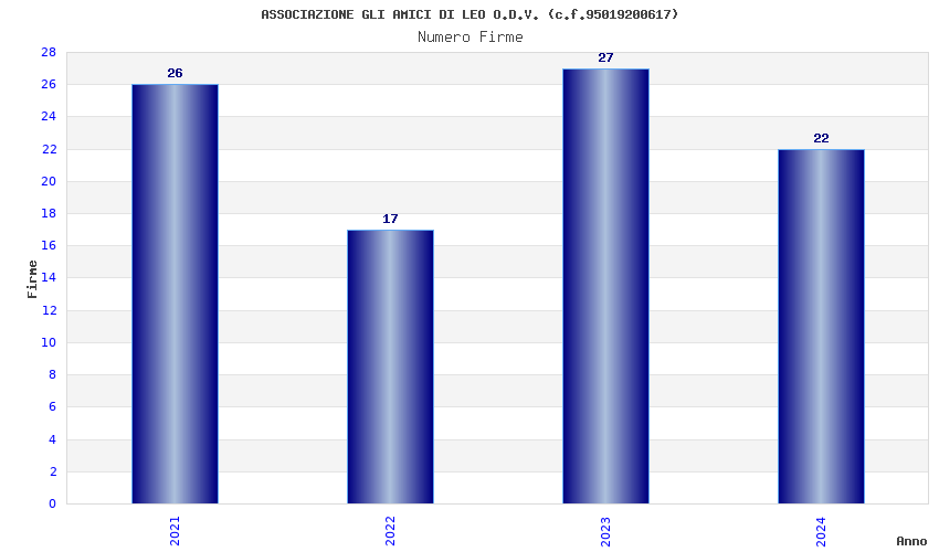 | Anno | Firme | Importi | Media | Naz. | Reg. | Prov. | Comu. |