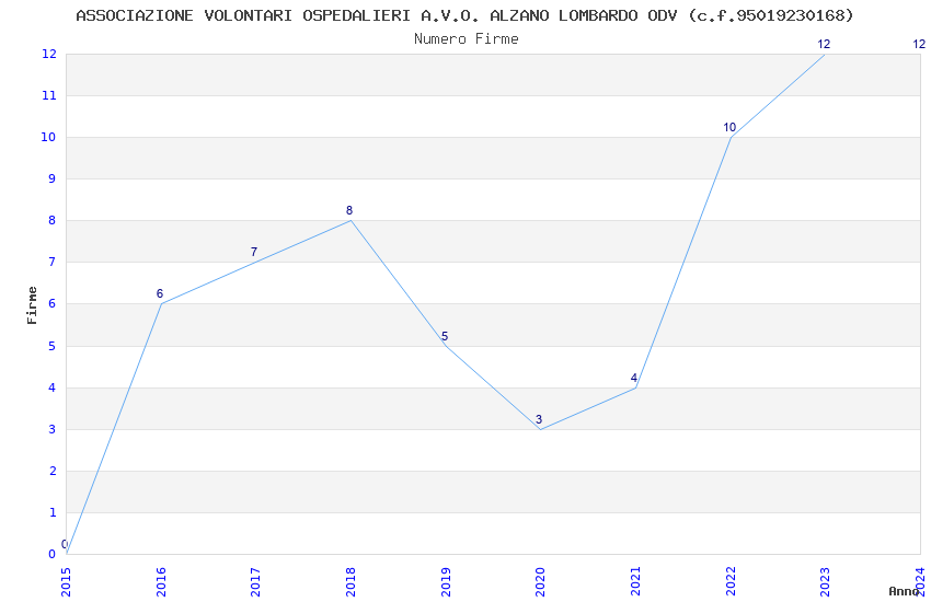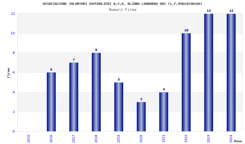 | Anno | Firme | Importi | Media | Naz. | Reg. | Prov. | Comu. |