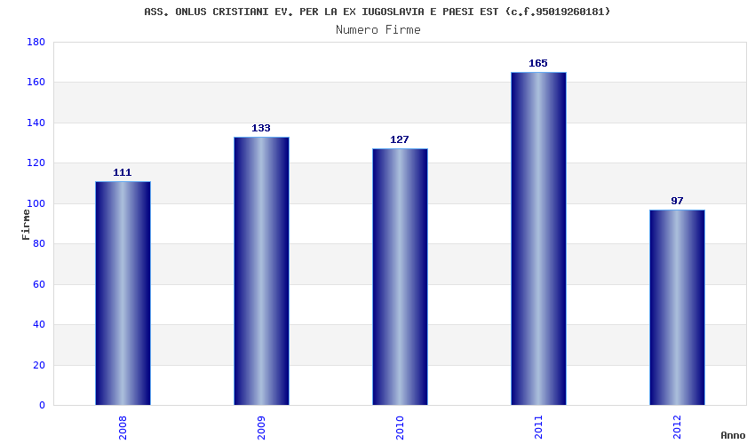 | Anno | Firme | Importi | Media | Naz. | Reg. | Prov. | Comu. |