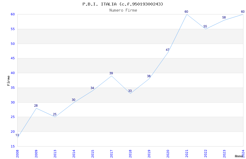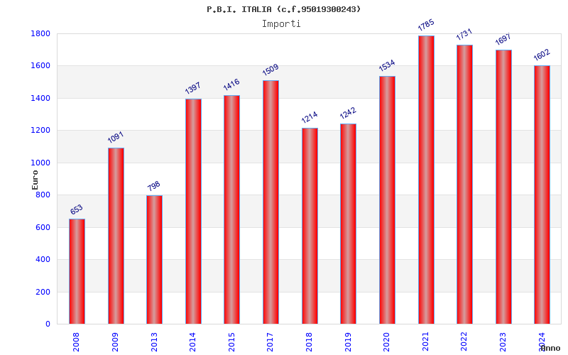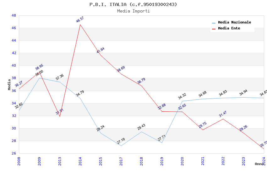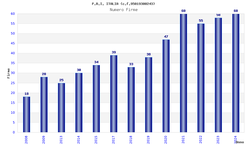 | Anno | Firme | Importi | Media | Naz. | Reg. | Prov. | Comu. |