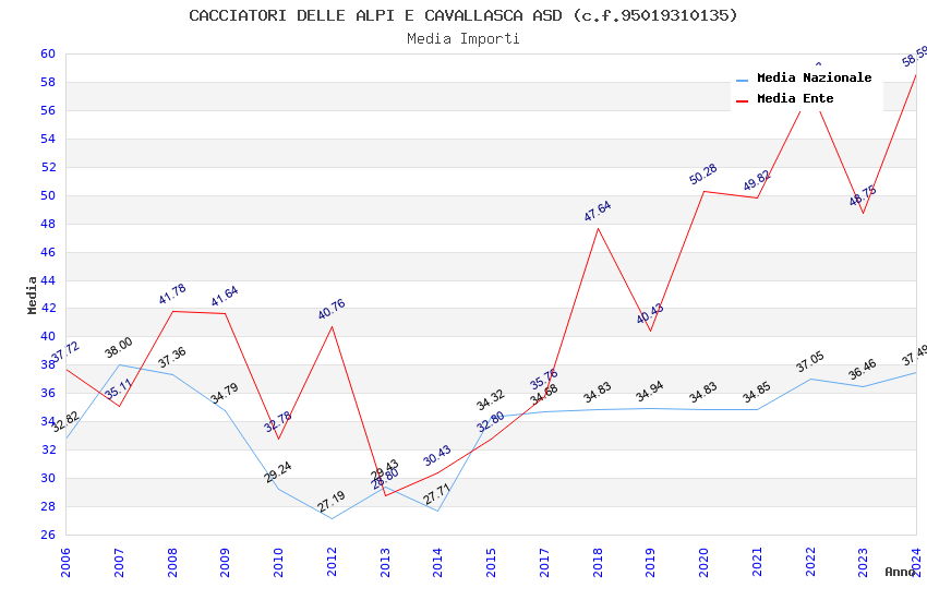 | Anno | Firme | Importi | Media | Naz. | Reg. | Prov. | Comu. |