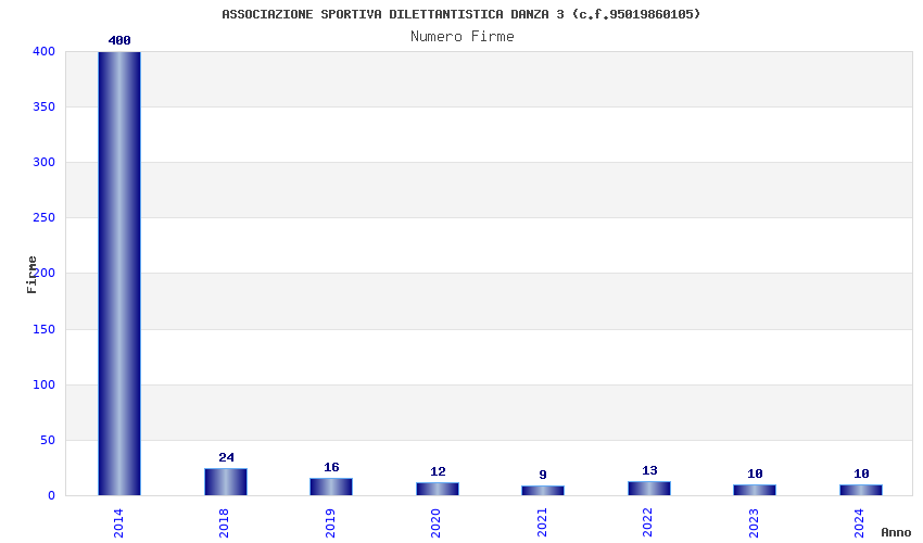 | Anno | Firme | Importi | Media | Naz. | Reg. | Prov. | Comu. |