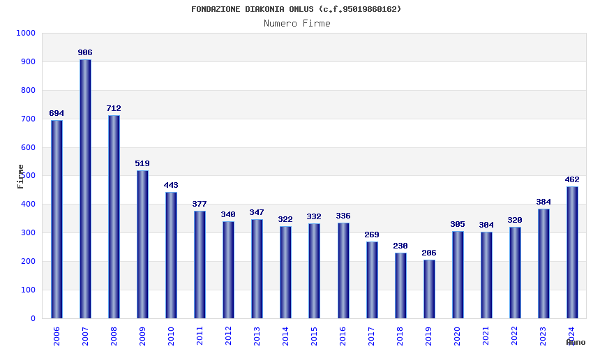 | Anno | Firme | Importi | Media | Naz. | Reg. | Prov. | Comu. |