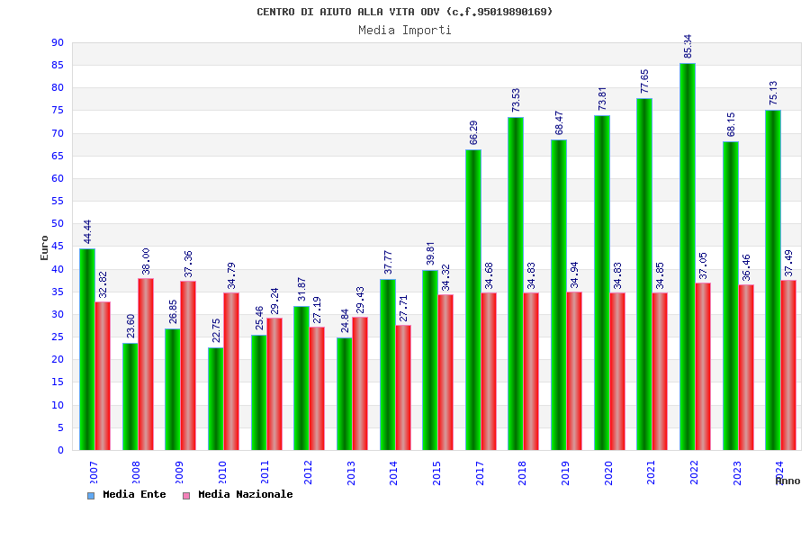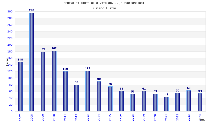 | Anno | Firme | Importi | Media | Naz. | Reg. | Prov. | Comu. |