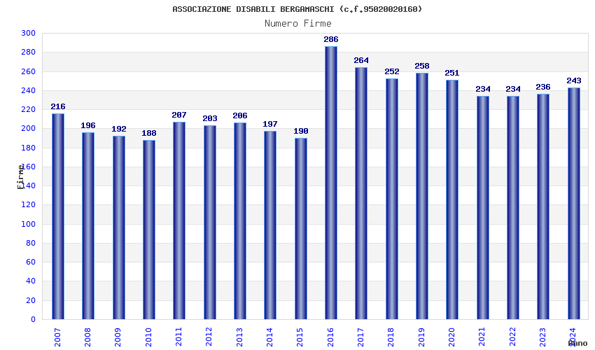 | 2016 | 286 | 10.438,72 | 36,50 | 4.858 | 1.213 | 88 | 33 |
