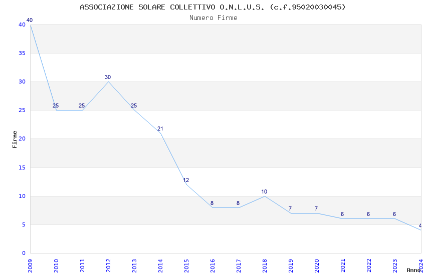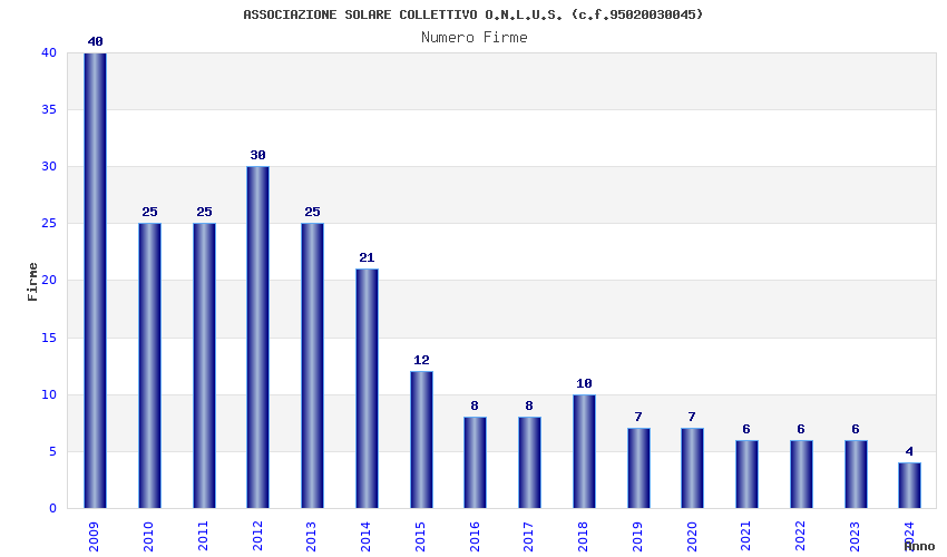 | Anno | Firme | Importi | Media | Naz. | Reg. | Prov. | Comu. |