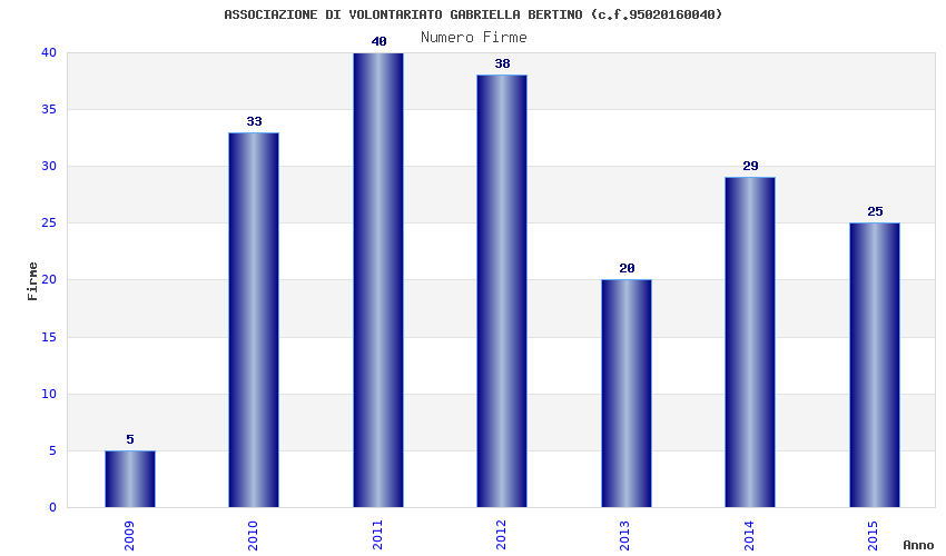 | Anno | Firme | Importi | Media | Naz. | Reg. | Prov. | Comu. |